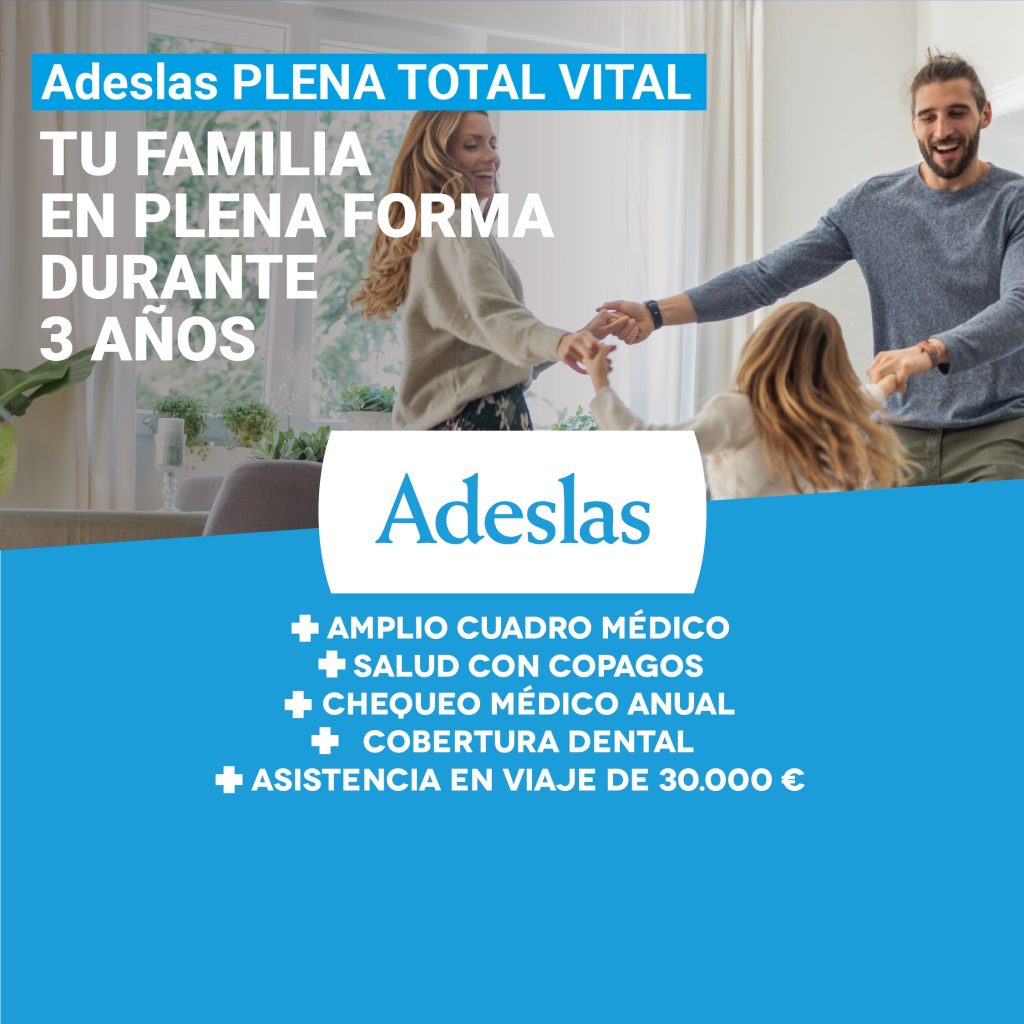 Adeslas Plena Total Vital es un seguro de asistencia sanitaria y dental con copagos, que mantiene el mismo precio mensual e importe de los copagos durante 3 años, para ayudarte a cuidar de la salud de los que más quieres. Pagas un pequeño copago como importe por el servicio recibido. para disfrutar de una cobertura completa sin pagar de más ya que solo pagarás por aquello que utilizas. El importe varía según el tipo de servicio o la especialidad médica que necesites y tiene un límite máximo anual de 500 € por asegurado y anualidad de seguro. Una vez superado el límite durante el año, no tendrás que abonar más copagos.